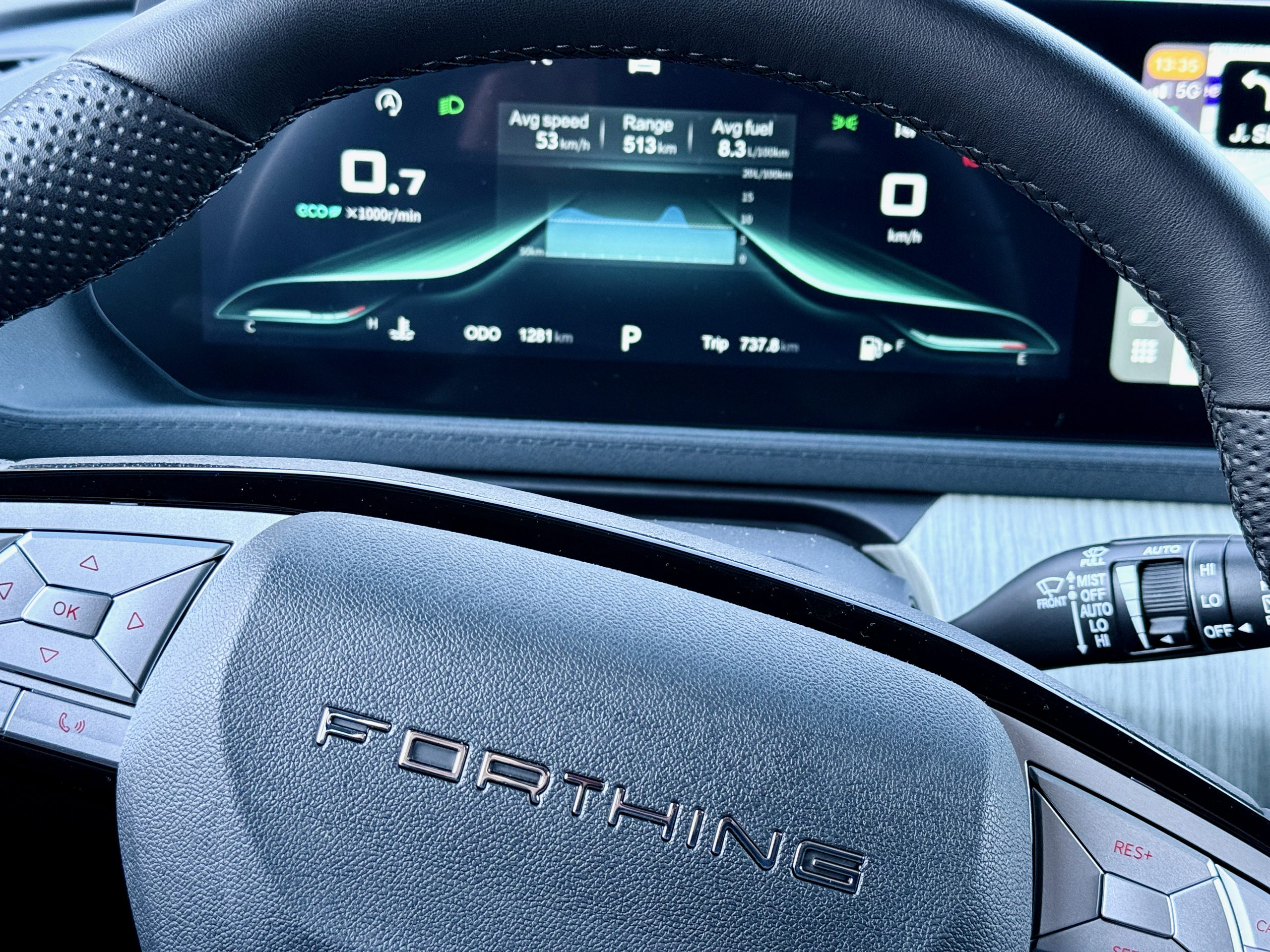 Aga auto, millega sõitsime, ei ole Dongfeng vaid Forthing – keegi ei räägi “Dongfeng Forthing”, öeldakse ikka “Forthing U-tour janiiedasi”. Esinduses saadakse aru, kui tuled sooviga “tahan 7-kohalist luksusmahturit.”