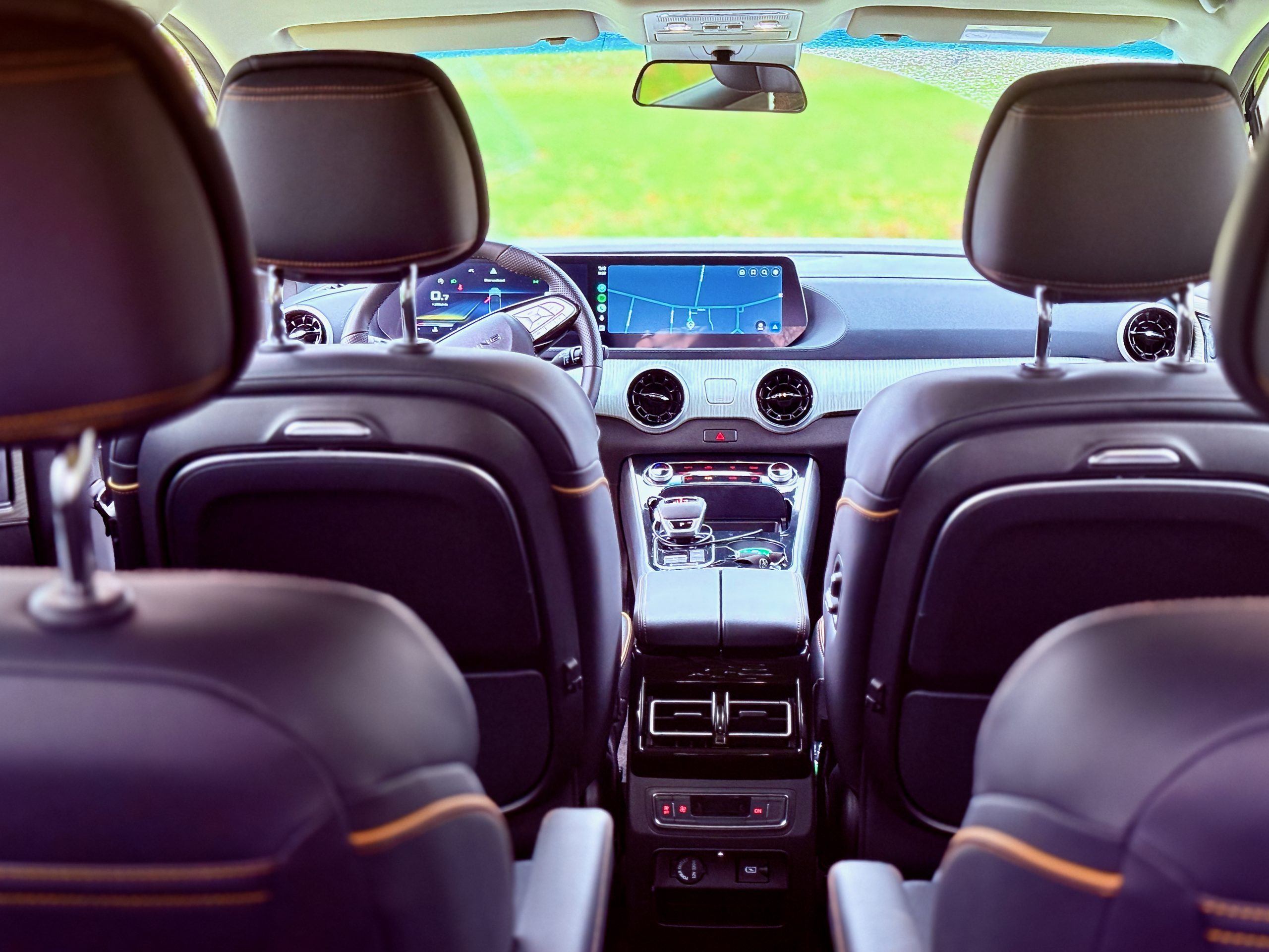 2+2+3 istmete asetus võimaldab teises reas nn kapteniistmeid. Kängitsetud nappa nahaga, soojendusega ja jahutusega ning massaažifunktsiooniga. Ruumi on liiastki, pikem-suurem inimene võib rahulikult powernap-i teha. Või siis tööd – igale sõitjale on “loomulikult” oma lauake.