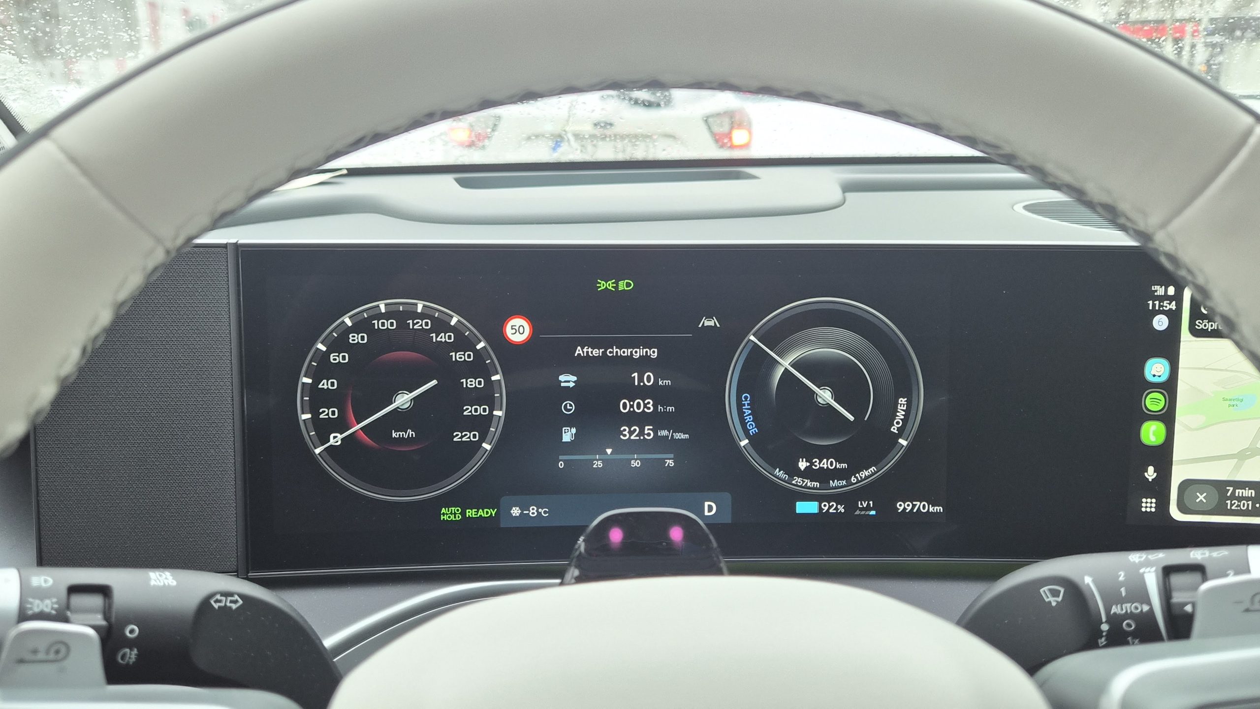 Päriselu Eestimaa talves on muidugi midagi muud, kui tehaseandmed. 150-kilovatine laadimiskiirus on Ioniq 9 maksimum, mida õnnestus näha. Kiirlaadijate hinnakirjad meenutavad pigem kiirlaenukontorit – tervislikum on pärast laadimist pangakonto seisu mitte vaadata.