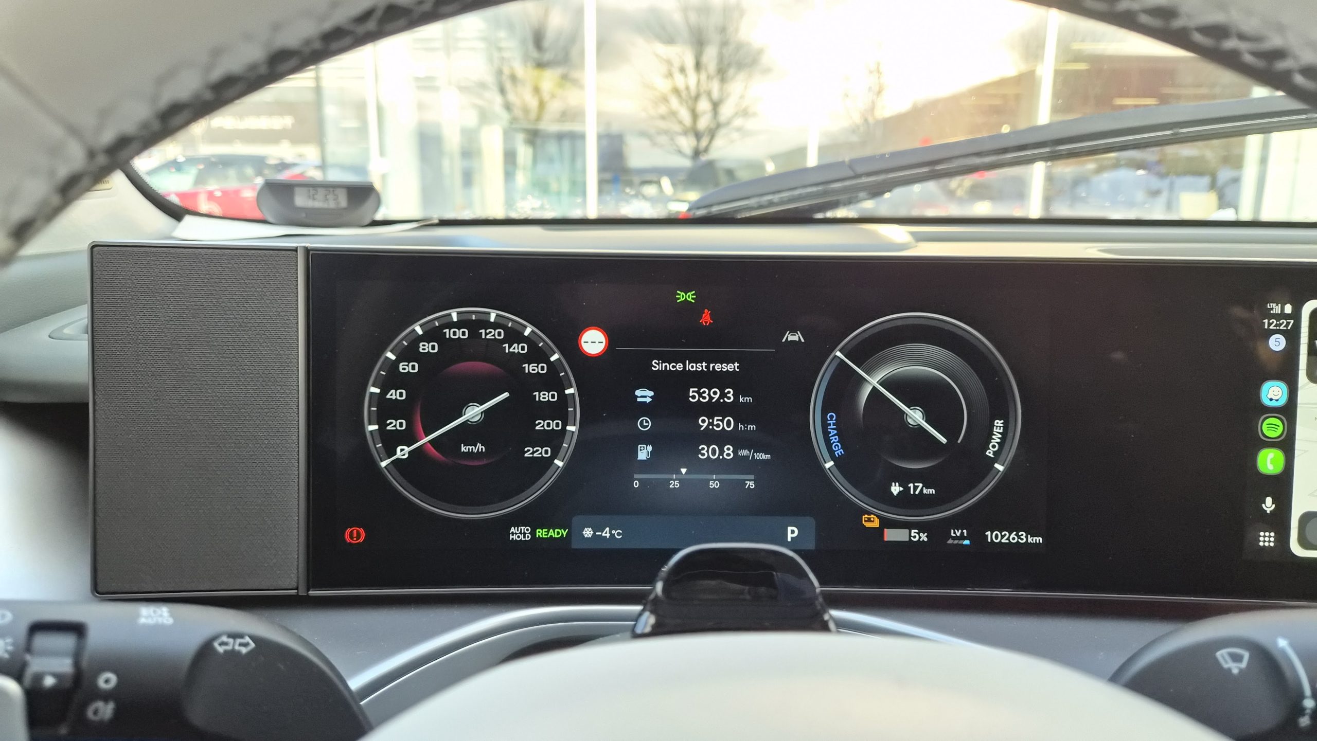 Sõitsin autoga pea viis ja poolsada kilomeetrit, enamasti maanteel ja lumetormis ning tegelik sõiduulatus jäi 350 kilomeetri kanti. Nagu kõik elektriautod, laeb ka selle 800 V süsteem kõige kiiremini vahemikus 10–80 protsenti ja 400 kW laadijaga saab seda teoorias teha 24 minutiga.