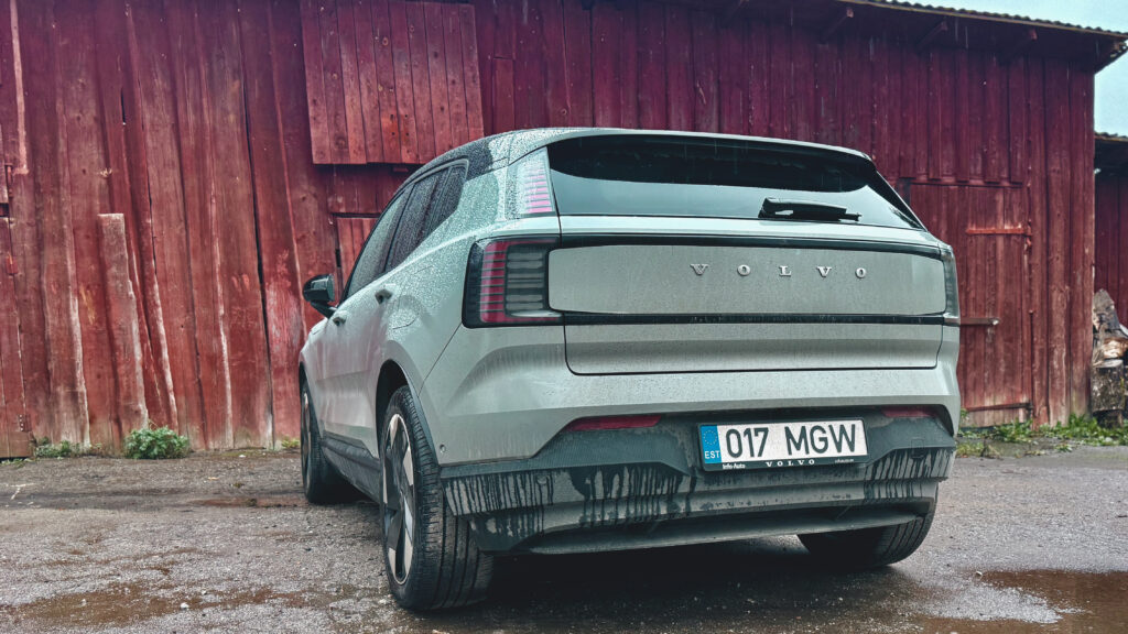 Nelikvedu on muidugi kunstiline liialdus, sest kaks elektromootorit ei tähenda, et autol kogu aeg kaks telge veavad – lülitus toimub automaatselt, vastavalt oludele. Maastikule pole EX30 mõeldud, pügamata murul ja laugel metsateel saab 17,7 cm kliirensiga sõiduk veidi hädaldades hakkama. Kruusateel on jälle lõbus.