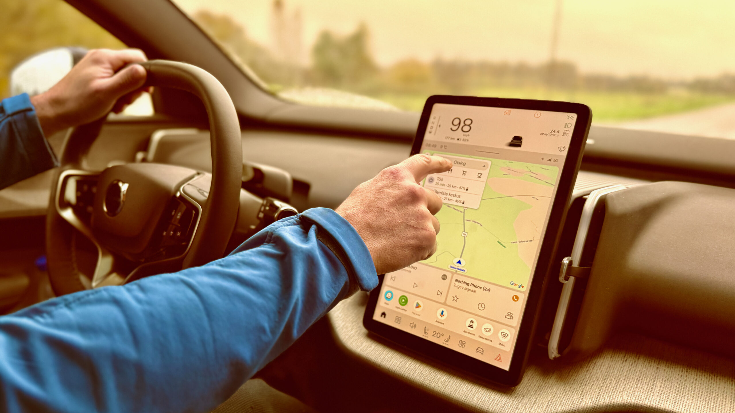 Infolust põhineb Google`i op süsteemil ja see on üks paras jamps, kui oled Apple`i kasutaja. Nimelt ei paari telfa ilma juhtmeta. Ka jamasime kõikide “vanade heade” Volvode puhul ühenduvusega üldisemalt. Telefon on justkui paaritud, aga sisu kätte ei saa. No pole hullu, kasutasime Google Maps-i ja ära ei eksinud.